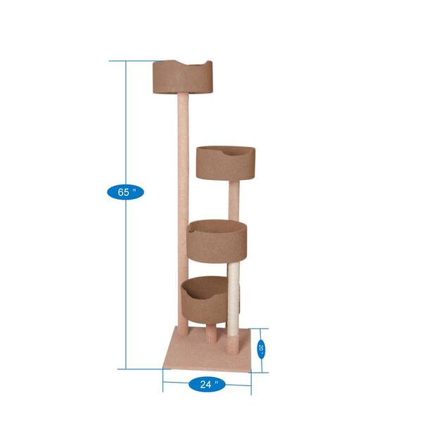 4 Perch Cat Condo, Multi-Level Cat Tree and Scratching Post with Oil-Less Sisal Ropes, Beige
