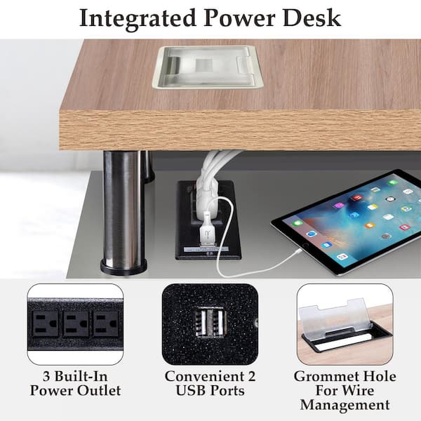 47.2 in. Contemporary White/Natural Wood 3-Drawer Desk with Keyboard Tray and USB Charging Station