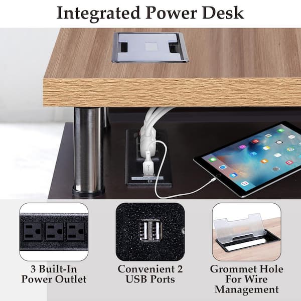 47.2 in. Rectangular Espresso/Natural Wood 3-Drawer Desk with Keyboard Tray and USB Charging Station