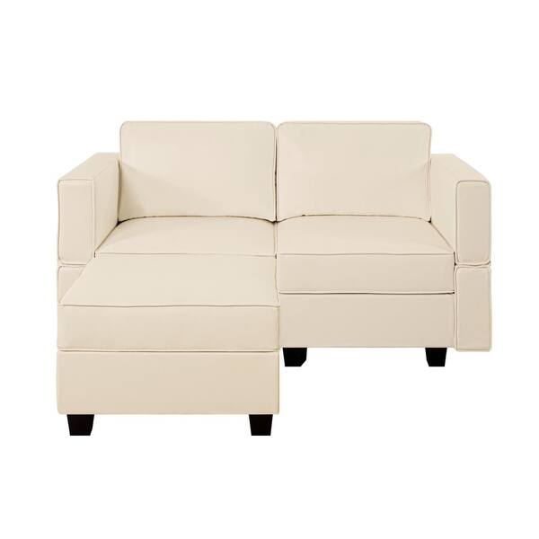 61.02 in. W Faux Leather Loveseat with Ottoman, Streamlined Comfort for Your Sectional Sofa in Beige