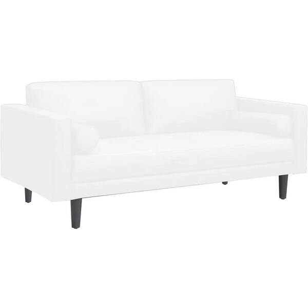 74.5 in. W Square Arm Leather Straight Top Grain Leather Mid-Century Sofa in White