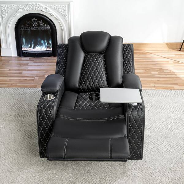 84.25 in. Theater-Style Air Leather Motion Sofa & Loveseat Sectional Sofa Set with Adjustable Headrests in Black