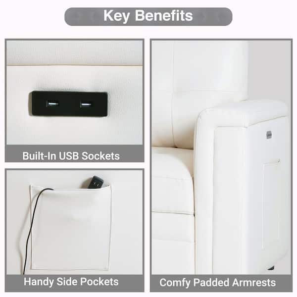 84 in. Reversible Sleeper Air Leather Rolled Arm Sectional Sofa with Storage and USB Ports in. White