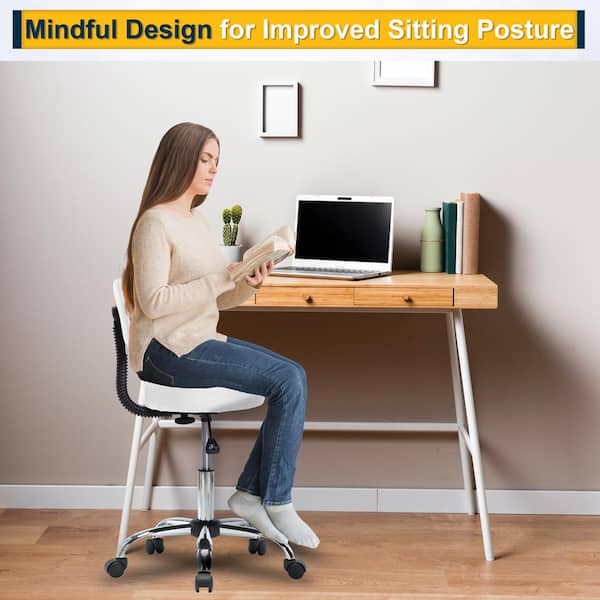 Adjustable Drafting Stool with Wheels and Backrest, Faux Leather Space-Saving Rolling Chair in White