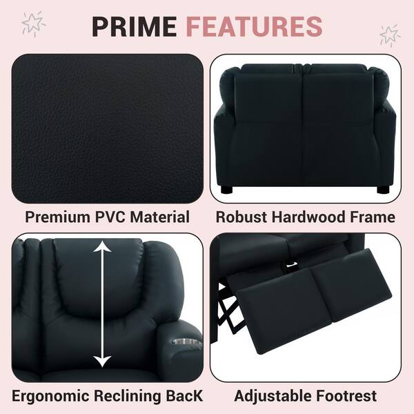 Black Pushback Kids Loveseat with Footrest and Cupholders - Recline, Relax, and Rule in PVC Comfort