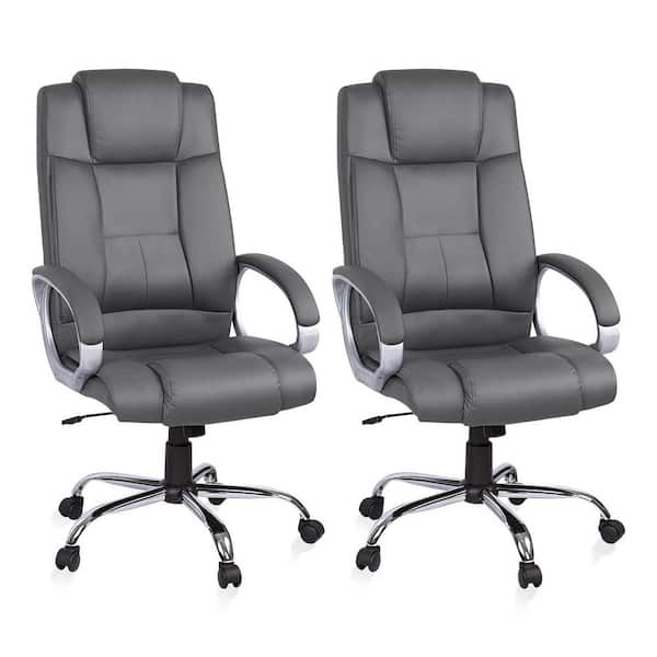 Faux Leather Adjustable Height High Back Executive Office Chair in Gray Set of 2