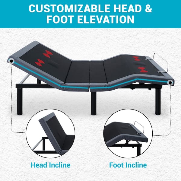 Gray Metal Bed Frame Full Platform Bed with Adjustable Base, 3-Mode Head and Foot Massage, and Wireless Remote