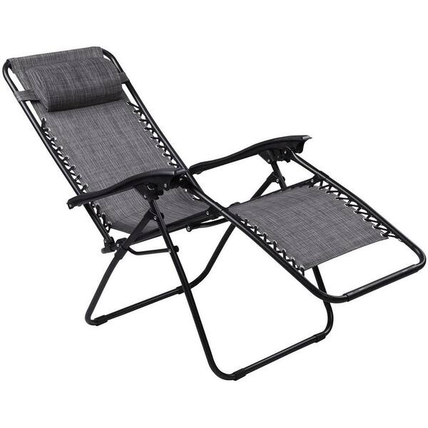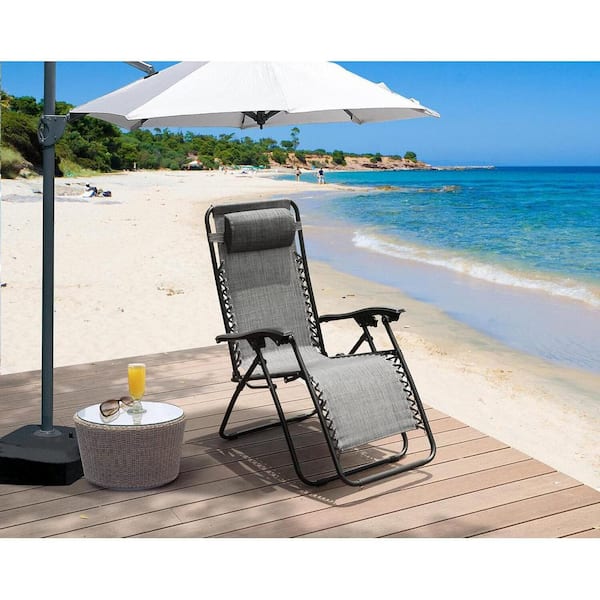 Gray, Zero Gravity Chairs Outdoor Lounge Chair Anti Gravity Folding Reclining Camping Chair with Headrest (Set of 2)
