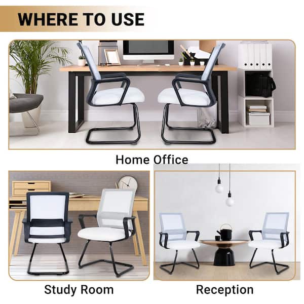Mesh Seat Upholstered Ergonomic Office Chair in White with Arms