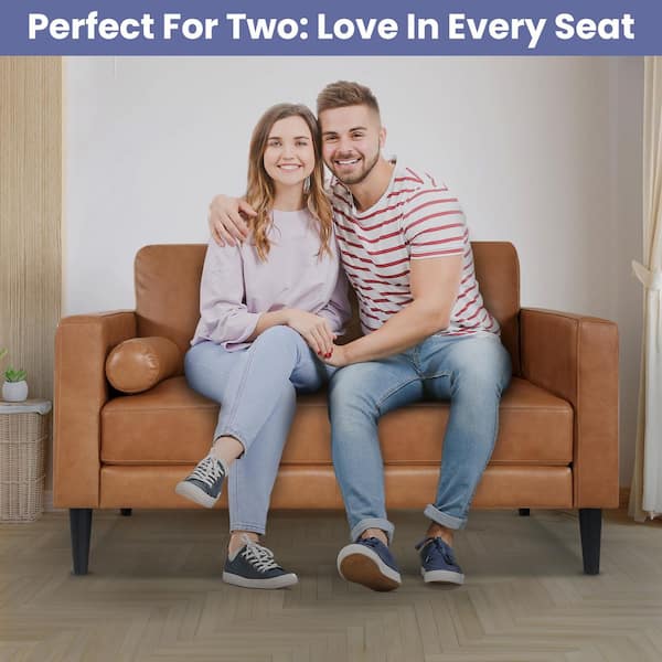 Mid-Century Genuine Leather 2-Seat Loveseat, Tan Small Sectional Sofa for Living Room or Bedroom