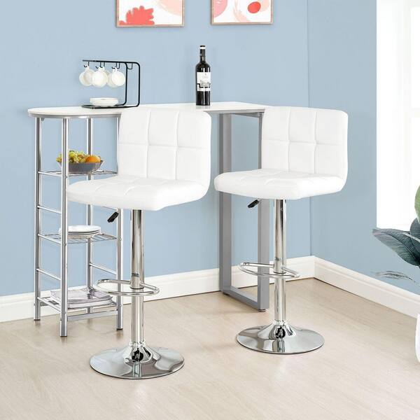 Set of 2 Bar Stools Adjustable Swivel Bar Chair Leather Counter Stools Bar Chairs, Stool for Kitchen Counter, White