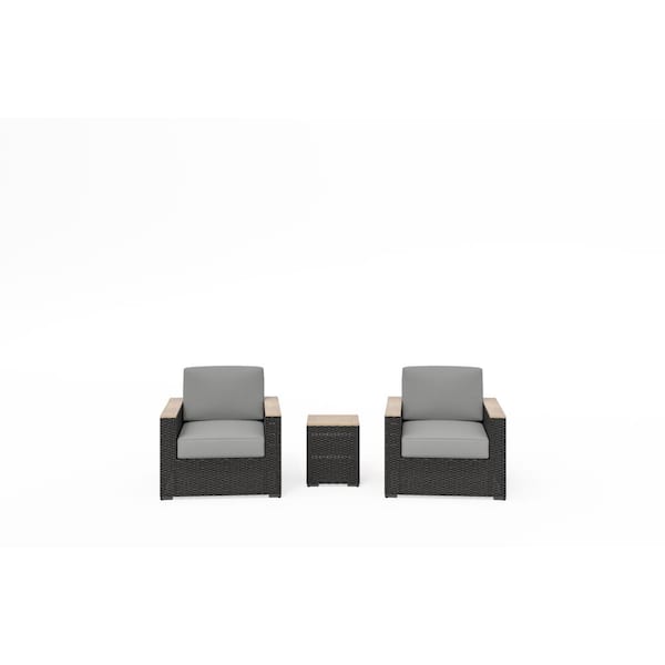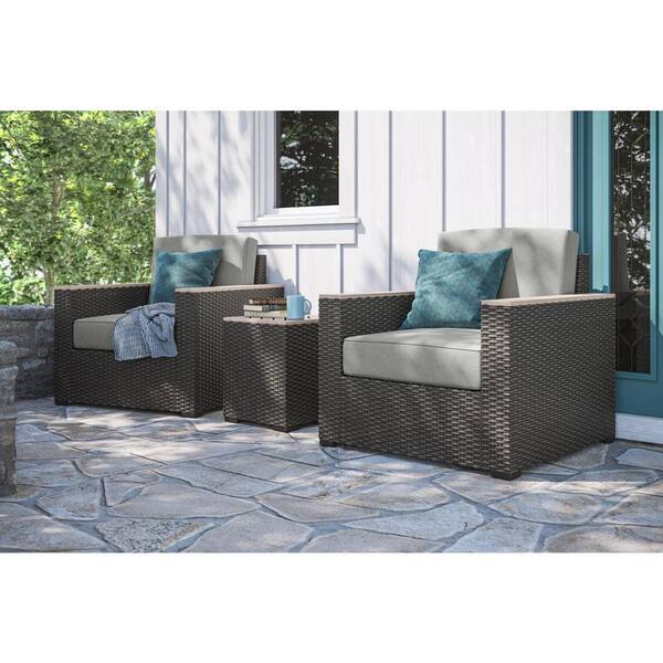 Boca Raton Brown 3-Piece Wicker Rattan Patio Conversation Set with Gray Cushions
