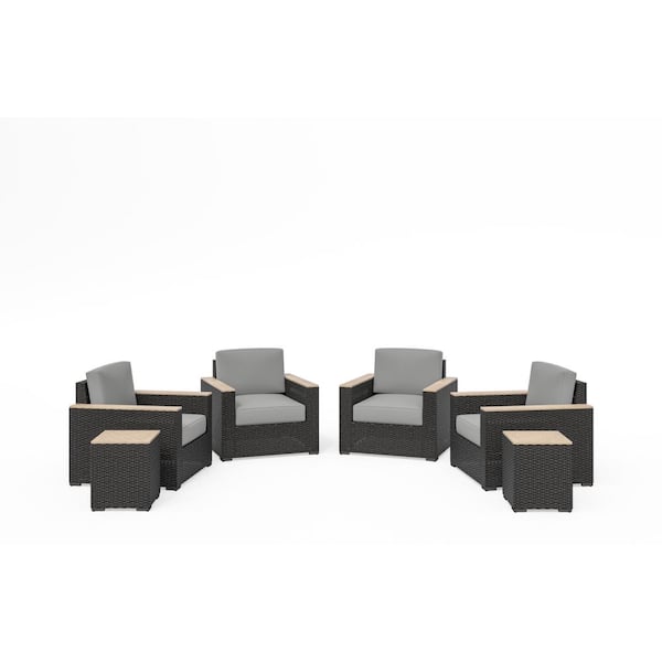 Boca Raton Brown 6-Piece Wicker Rattan Outdoor Conversation Set with Gray Cushions