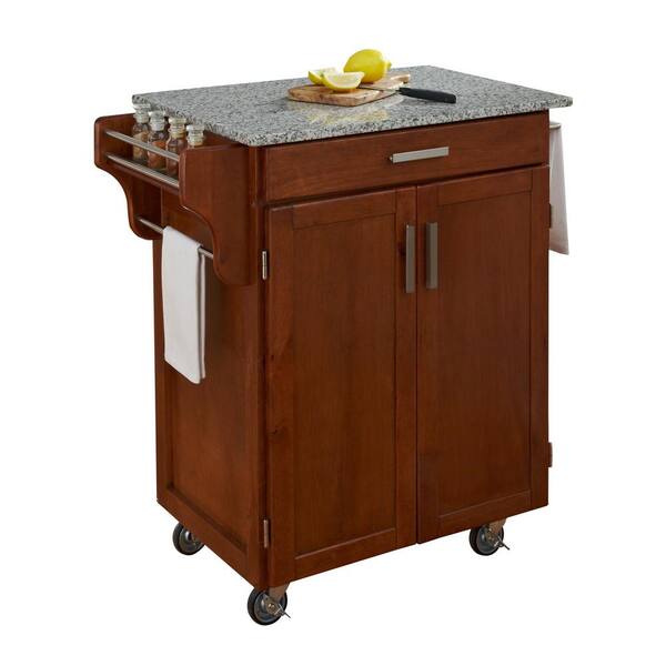Cuisine Warm Oak Kitchen Cart with Salt and Pepper Gray Granite Top