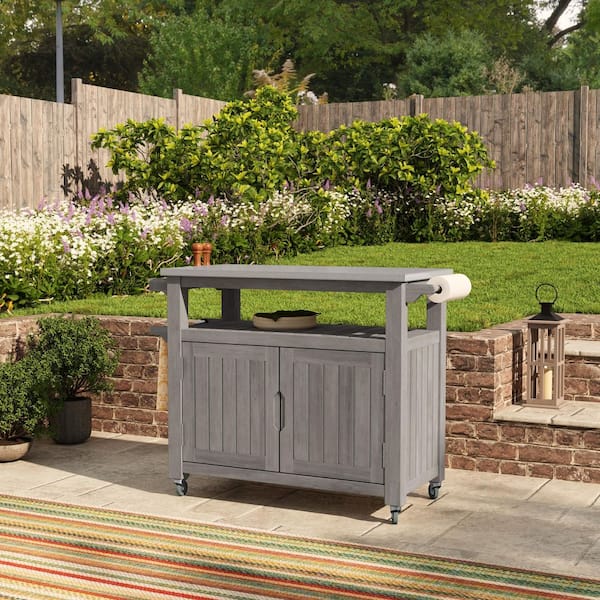 Maho Gray Teak Outdoor Barbeque Cart Serving Bar