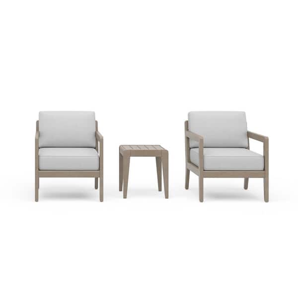 Sustain Gray 3-Piece Wood Patio Conversational Set with End Table and 2 Lounge Chairs with Gray Cushions