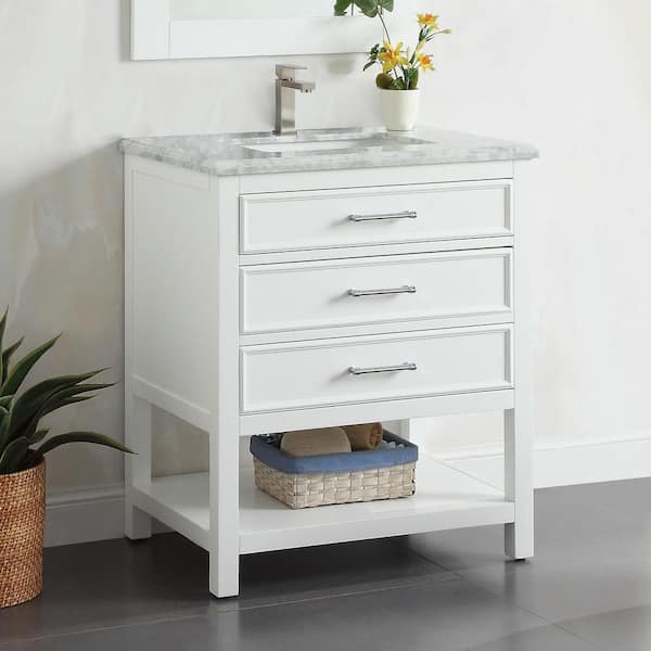Smania 30 in. W x 22 in. D x 35.63 in. H Single Sink Freestanding Bath Vanity in Matte White with Carrara Marble Top