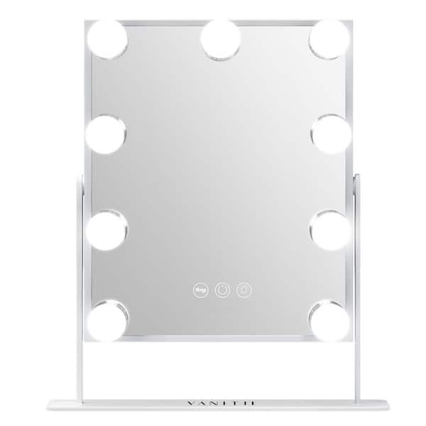12 in. W x 14 in. H Tabletop Rectangular Framed Adjustable Brightness LED Bulb Hollywood Makeup Mirror White