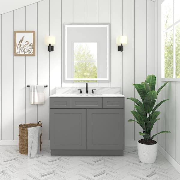 2-Drawer 42 in. W x 21 in. D x 34.5 in. H Ready to Assemble Bath Vanity Cabinet without Top in Shaker Grey