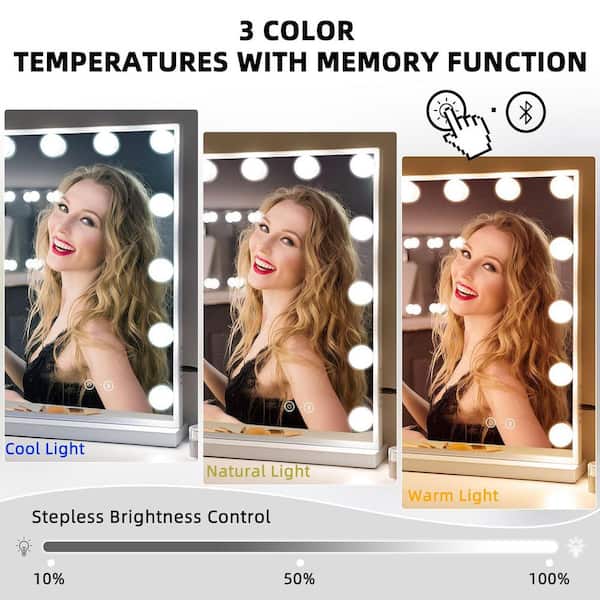 22.8 in. W x 18.9 in. H Tabletop Rectangular Framed Adjustable Brightness, Bluetooth LED Hollywood Makeup Mirror, White