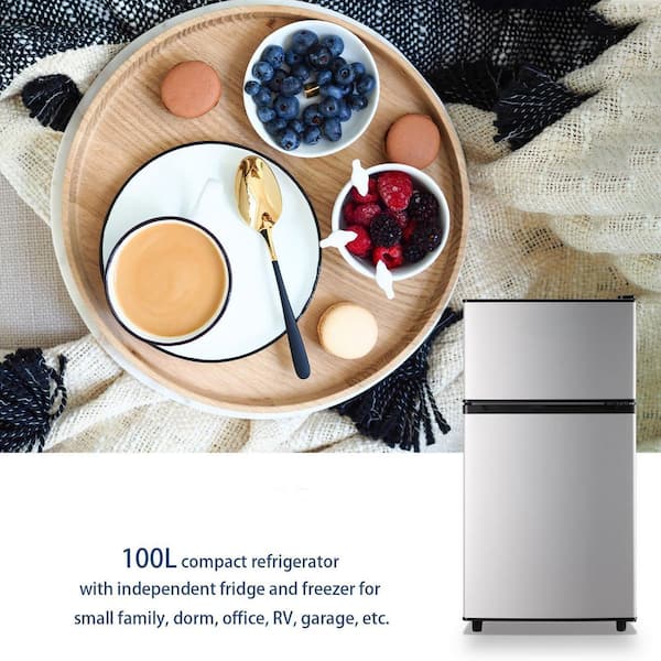3.5 cu. ft. Manual Defrost Mini Upright Freezer in Stainless with Dual Door Adjustable Shelves Dorm Refrigerator Home