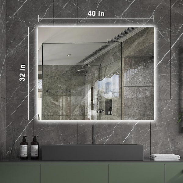 40 in. W x 32 in. H Rectangular Frameless LED Light with 3 Color and Anti-Fog Wall Mounted Bathroom Vanity Mirror