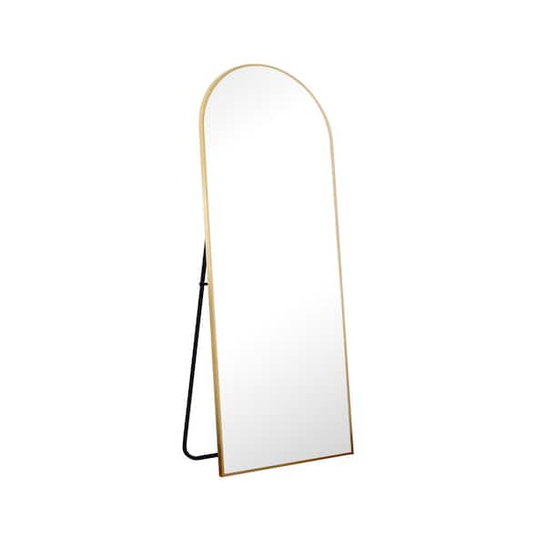 64 in. x 21 in. Arched Full-Length Mirror with Gold Aluminum Alloy Frame, Rounded Corners, Standing, Hanging, Leaning
