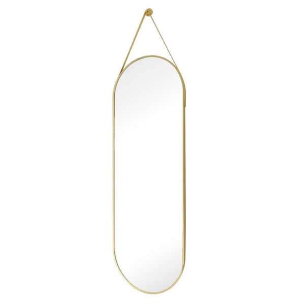HOMLUX 16 in. W x 48 in. H Oval Framed Wall Bathroom Vanity Mirror in Gold Decorative Modern Rust-Resistant Metal Frame