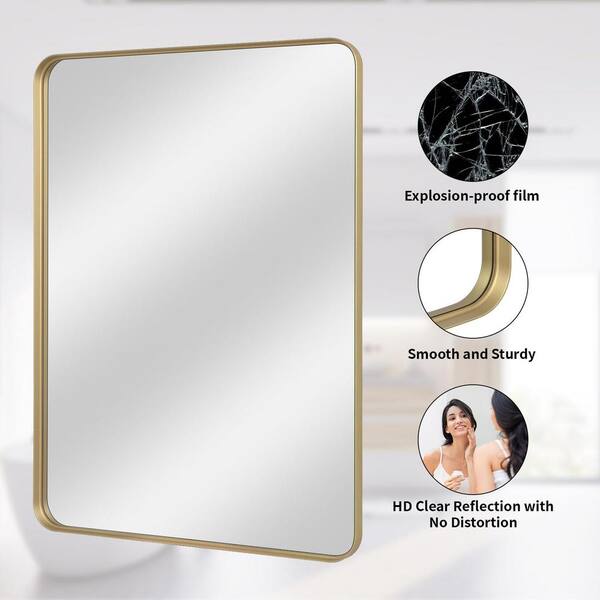 HOMLUX 22 in. W x 30 in. H Rectangular Framed Wall Bathroom Vanity Mirror in Gold Decorative Modern Rust-Resistant