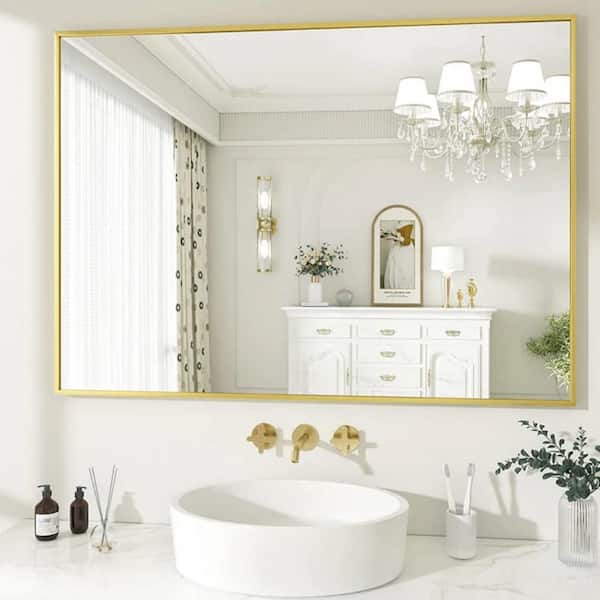 HOMLUX 26 in. W x 38 in. H Rectangle Framed Wall Bathroom Vanity Mirror in Gold Decorative Modern Rust-Resistant