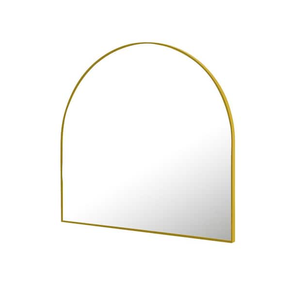 HOMLUX 32 in. W x 34 in. H Round Framed Wall Bathroom Vanity Mirror in Gold Decorative Modern Rust-Resistant Metal Frame