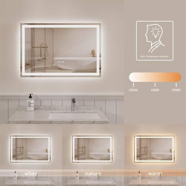 Illume 36 in. W x 24 in. H Rectangular Frameless Dimmable Anti-Fog LED Light Wall Bathroom Vanity Mirror Silver