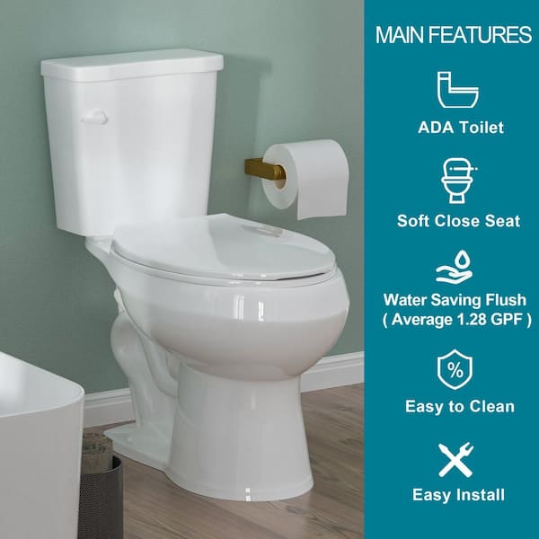 ADA Chair Height 2-Piece Toilet 1.28 GPF Single Flush Elongated Toilet in White Map Flush 1000g with Soft-Close Seat