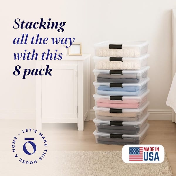 56 qt. Full/Queen Underbed Clear Plastic Latching Storage Container, 8-Pack