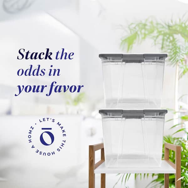 64 qt. Secure Latching Large Plastic Storage Bin with Gray Lid in Clear (4-Pack)
