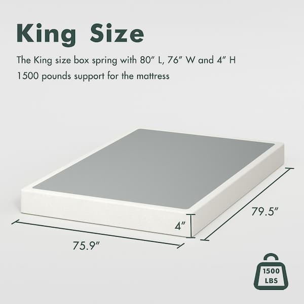 4 in. High King Size Box Spring with Sturdy Steel Structure, Easy Assembly