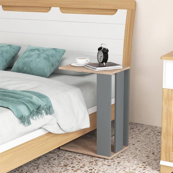 16.5 in. Brown C-shaped Wood End Table with Bottom Shelf and 4 Universal Wheels 2-tier Nightstand(Set of 2)