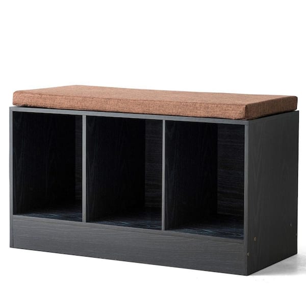 18.5 in. H 3-Pair Black Wood Shoe Rack with Removable Cushion