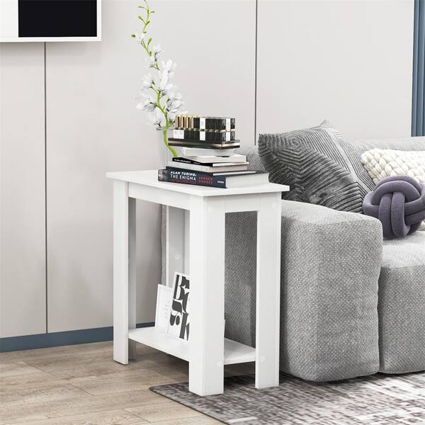 23.5 in. White Rectangular Engineered Wood 2-tier End Table w/ Storage Shelf Night Stands Sofa Side Coffee Table