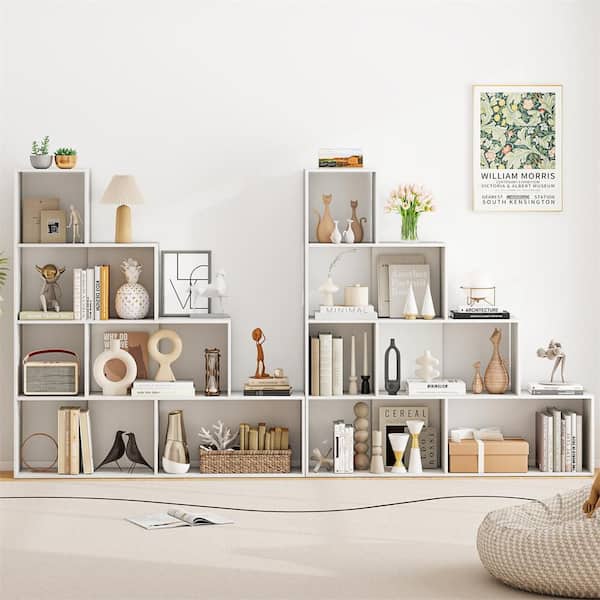 2PCS 64 in. Tall White Home Wood 4-tier Ladder Bookcase Freestanding Storage Shelf w/Open Cubes 2 Anti-tipping Devices