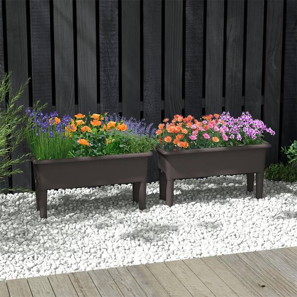 31.5 in. L x 12 in. W x 16 in. H Brown Plastic Raised Garden Bedswith Water Drainage Hole for Vegetables Fruits Herbs