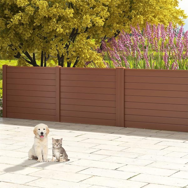 37.5 in. Plastic Air Conditioner Garden Fence, ith Stakes Pool Equipment Fence Screen Brown(Set of 2)