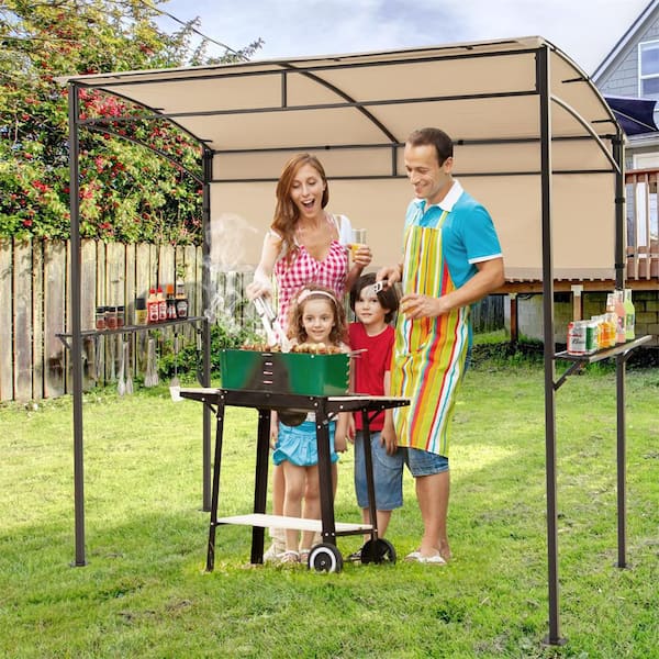 4.4 ft. x 7.8 ft. Outdoor Grill Gazebo Barbecue Shelter with Metal Shelves and Hooks Beige