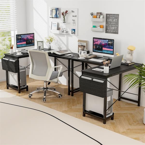49.5 in. L-Shaped Dark Gray and Black Computer Desk Reversible with Side Storage Bag and Host Stand Metal Corner