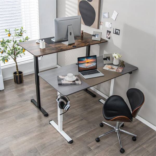 55 in. Gray Wood Electric Standing Desk Sit to Stand Electric Desk Powerful Motor and Height Adjustable