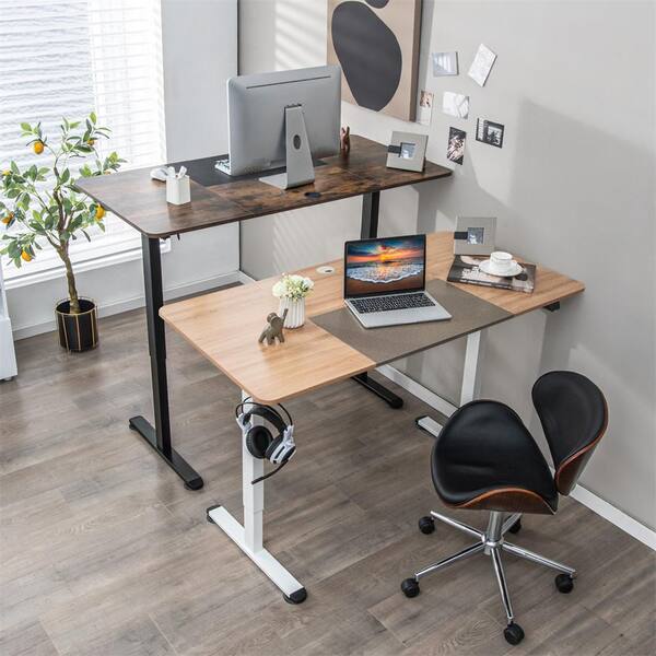 55 in. Narural Wood Electric Standing Desk Sit to Stand Electric Desk Powerful Motor and Height Adjustable