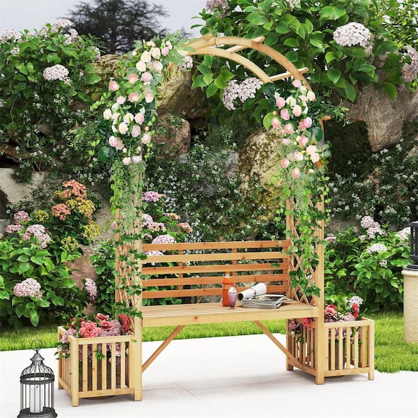 80 in. x 73 in. Arbor Garden Arch with Planters Wooden Pergola Archway with 2-Person Bench