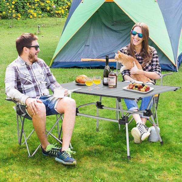 Folding Camping Table Collapsible Aluminum Roll Up Beach Table with Carrying Bag 4-Level Adjustable Height Silver