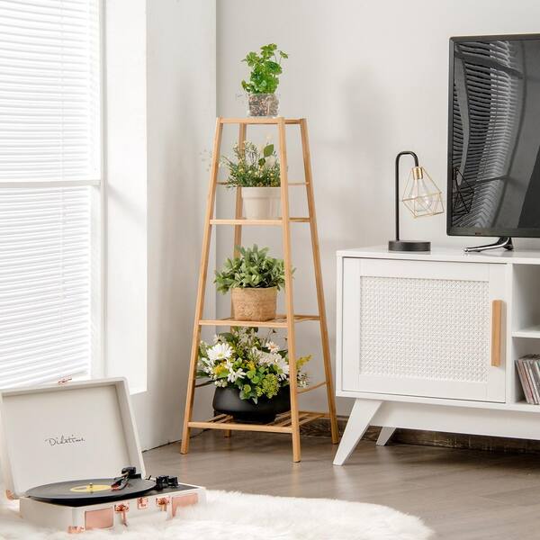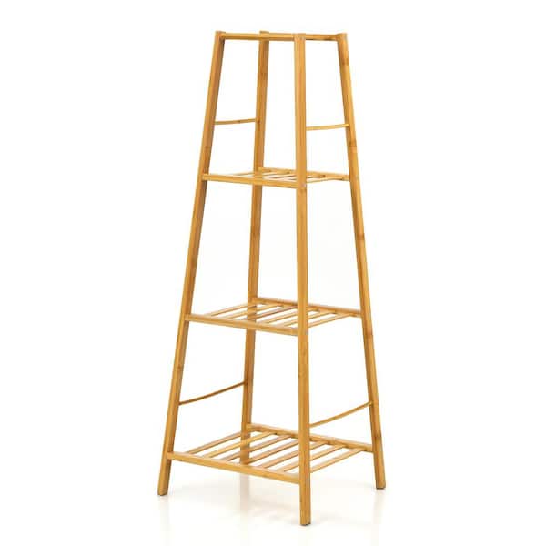 Indoor/Outdoor Natural Wood Plant Stand Multiple Utility Shelf Free Standing Storage Rack Pot Holder 4-Tiers