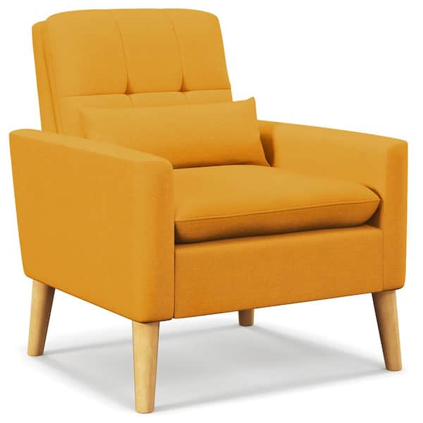 Yellow Upholstered Tufted Accent Armchair with Lumbar Pillow Natural Rubber Wood Legs